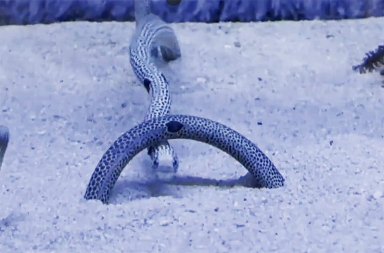 鳥取市にある水族館「とっとり賀露かにっこ館」がXに投稿したチンアナゴの姿にネット界隈がざわついた。11月11日が「チンアナゴの日」とされるなど、チンアナゴといえば砂地から直立する姿が定番。そんなイメージを裏切る姿に多くの人が衝撃を受けたようだ。
