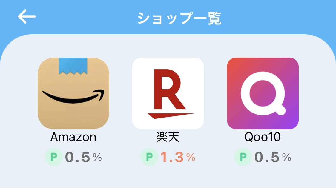 ギバースにはAmazon以外にも楽天市場とQoo10の掲載もあります。楽天市場に関しては1.3%還元で他のポイントサイトより高還元なので、Amazonと楽天市場を利用する方はぜひギバースを経由して買い物してみてください。