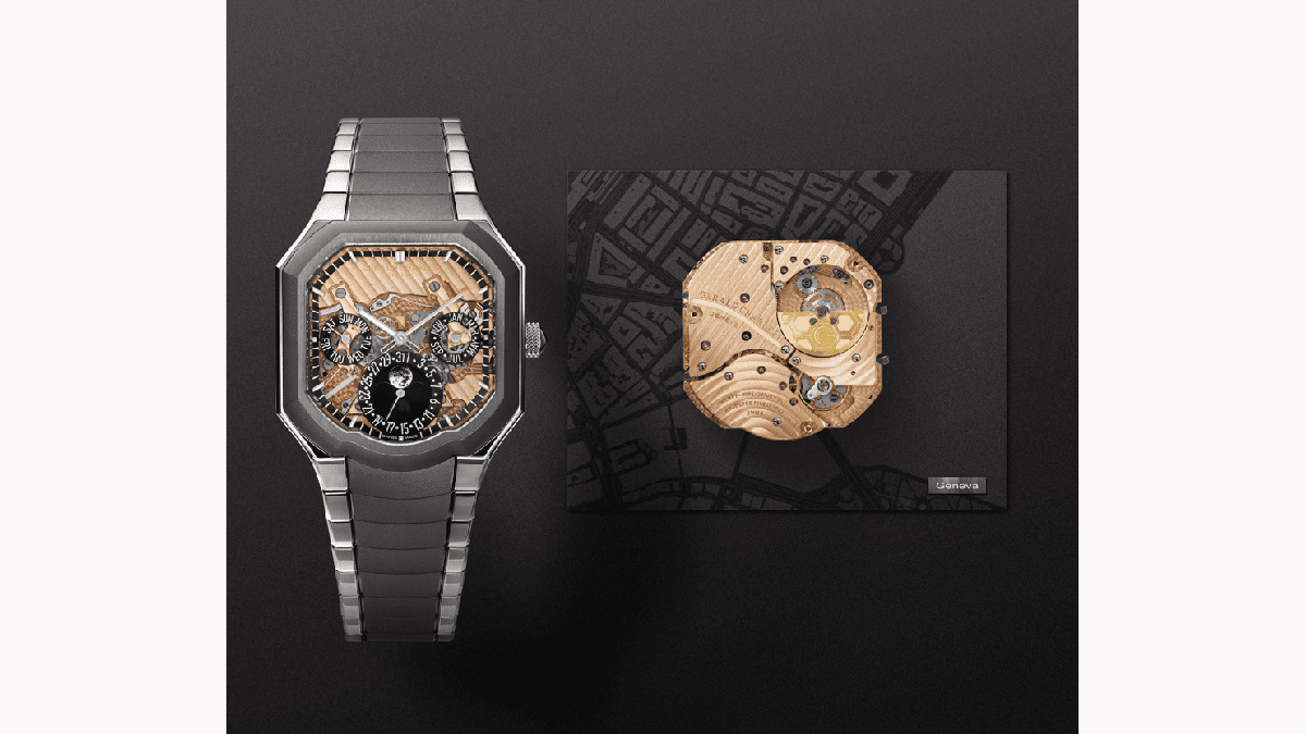 400年にわたるスイス時計製造の歴史において、自社製でアシンメトリー構造を持ち、3つのカウンター表示を備えた自動巻きパーペチュアルカレンダーキャリバーが発表されたのはこれが初めて。