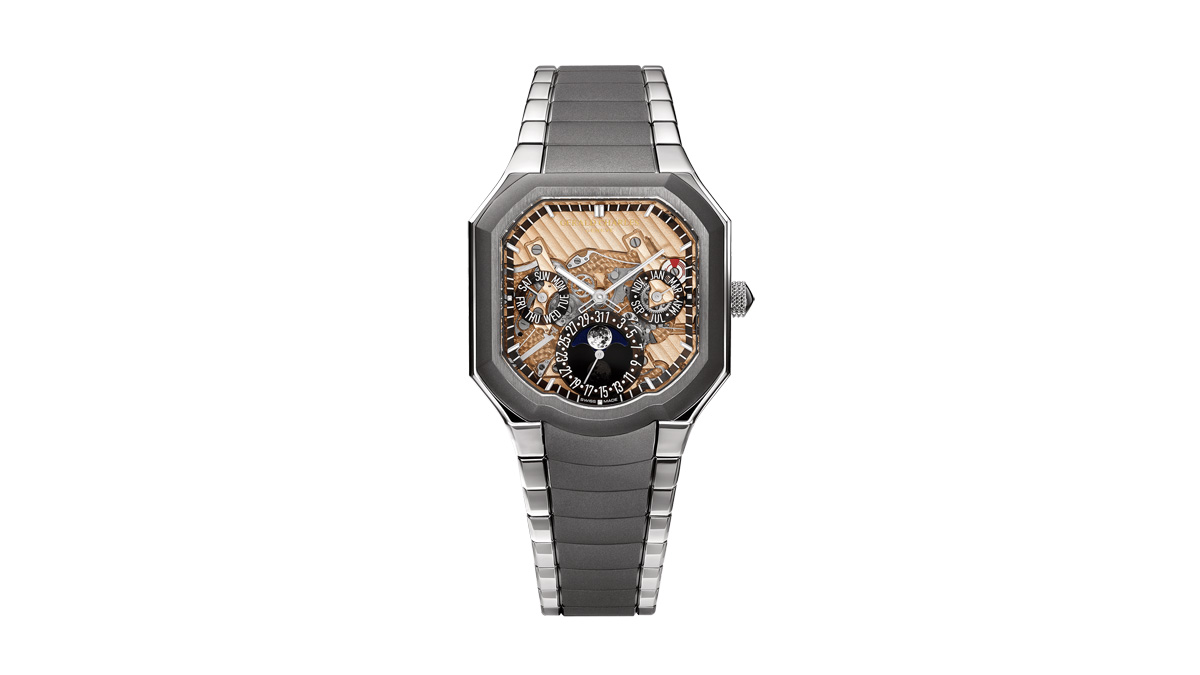 さらに、その複雑な形状と高度なエンジニアリングが求められるにもかかわらず、本モデルは100メートルの防水性能を実現しており、パーペチュアルカレンダーでありながら、泳ぐことさえ可能なタイムピースだ。