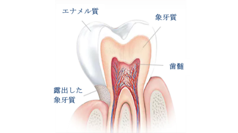 1.歯のエナメル質がすり減るなどの原因により象牙質が露出する