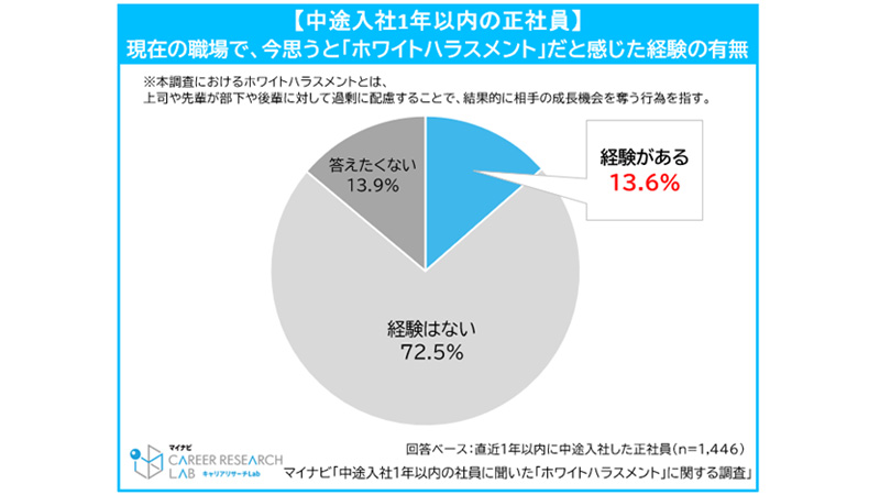 マイナビ「中途入社1年以内の社員に聞いた“ホワイトハラスメント”に関する調査」