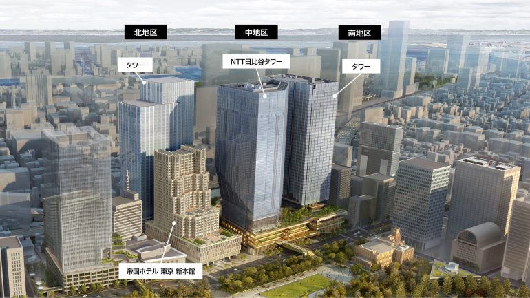 2028年度に南地区のタワー、2031年度に中地区のNTT日比谷タワーが竣工予定