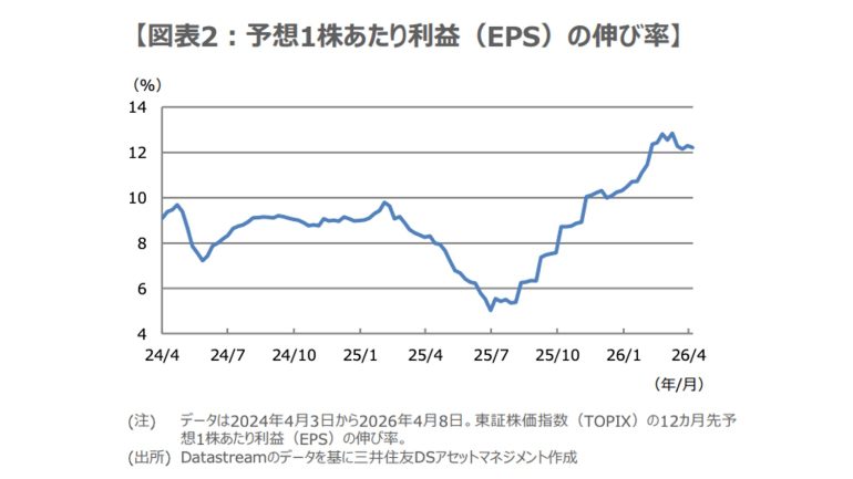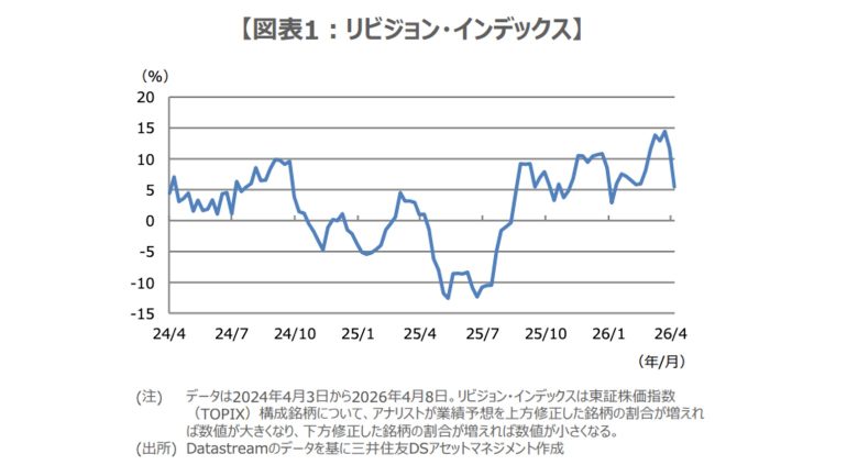 中東情勢の先行きは依然不透明感が残るため、企業の2026年度の業績見通しは、総じて控えめな内容となることも想定される。その場合、市場の業績予想が下方修正され、前述のリビジョン・インデックスなどが低下し、株価の重しになる恐れもある。