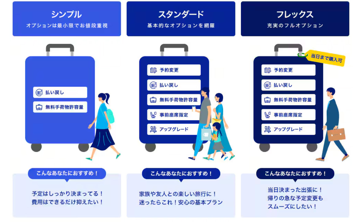 が、一方で「レガシーキャリアなのに予約変更ができない」という点は残念と言わざるを得ない。一つ上のプラン「スタンダード」であれば、予約変更は別料金を払えば実行可能。「シンプル」はそうしたことすらできない、というわけだ。