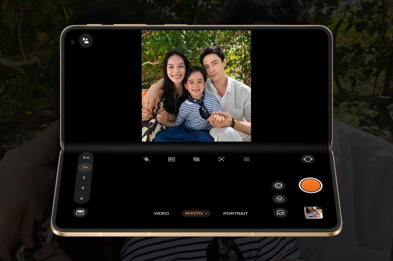 アウトカメラは、最大約2億画素の3つの高画質カメラとマルチスペクトルカメラの計4眼カメラを搭載し、インカメラには、約2,000万画素の高精細カメラを採用。Hasselbladと共同開発した画像処理方法で、フォルダブルでもプロ級の撮影を実現する。