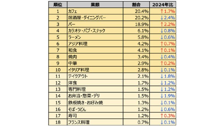 ラーメンやテイクアウト系業態が減少傾向