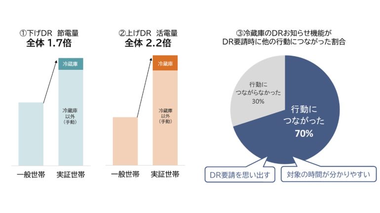 中部電力ミライズとの共同実証では、被験者の7割が「お知らせ機能が、他のDR要請に応える行動につながった」と回答しており、下げDR・上げDRの双方で行動変容が確認されている。