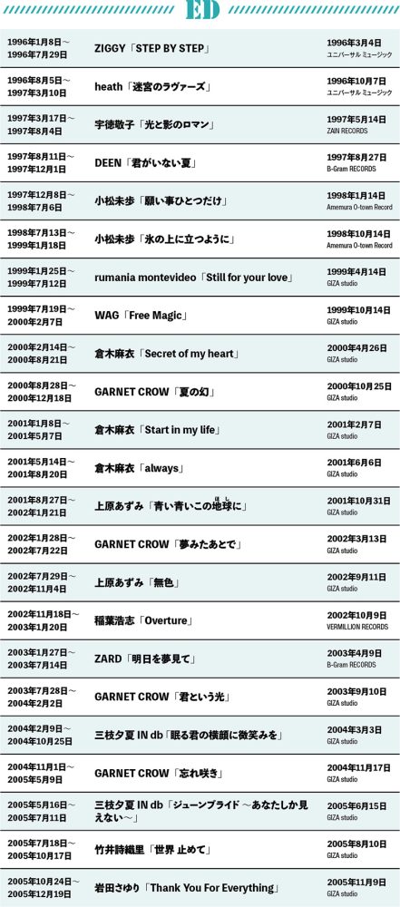 DIME最新号では、全135曲を3つに分けてで俯瞰し、ヒット曲が作品にもたらした価値から演出の変遷、トリビアまで整理。作品理解が深まる必読ガイドだ。