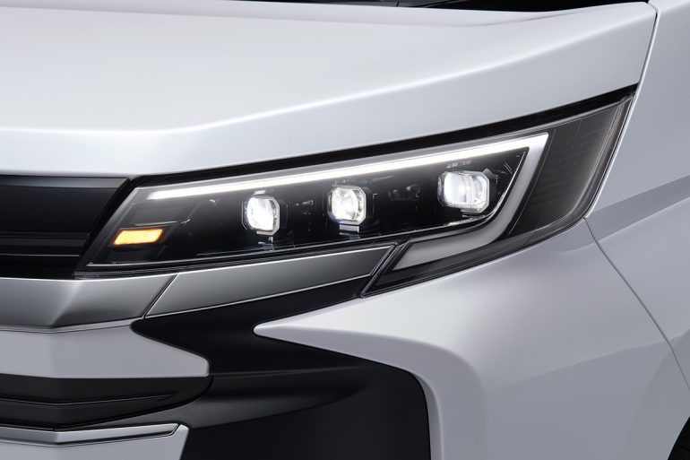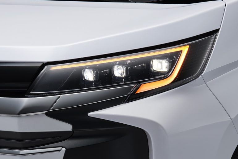 さらに、プロジェクター式LEDヘッドランプ(マニュアルレベリング機能付)+LEDターンランプ+LEDクリアランスランプを全車に標準装備したほか、全グレードにおいてフロントグリルのメッキ部位をメッキモール+ボディカラー共色に変更した。