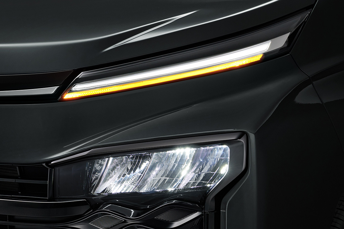 そのエクステリアについては、フロントまわりの意匠変更し、ボディとの一体感を演出。プロジェクター式LEDヘッドランプ(オートレベリング機能付)+LEDターンランプ+LEDクリアランスランプ(デイライト機能付)など、目元を強調するスタイリッシュなデザインを採用(S-Zにメーカーオプション)。