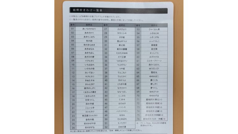 そんな炊飯器の説明書にある炊きわけ一覧表も壮観すぎる。