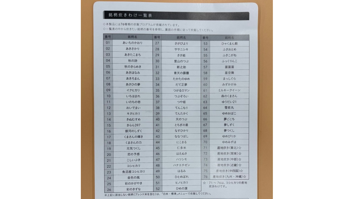 「2020年に発売された初代はちょうど炊飯器の「炊きたて」シリーズが50周年だったため50銘柄に挑戦しましたが、以降お客様が炊かれている銘柄をより炊きわけできるよう、銘柄が増えていき、現在70銘柄になっています」