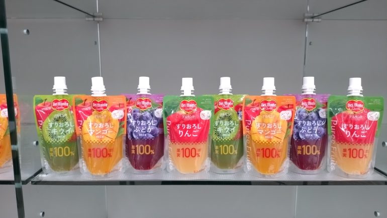 野中さんは、「弊社の調査でも、果物は『とりたい』という意向は高いものの、値段の高さや日持ちのなさ、そして『皮をむくのが面倒』という不満が大きな壁になっていることが分かりました」と指摘する。そこでデルモンテが提案したのが、「生の果物」「カットフルーツ」に続く、持ち運び可能な“新たなフルーツ”としてのパウチ入りのすりおろし果実・ピュレフルーツだ。