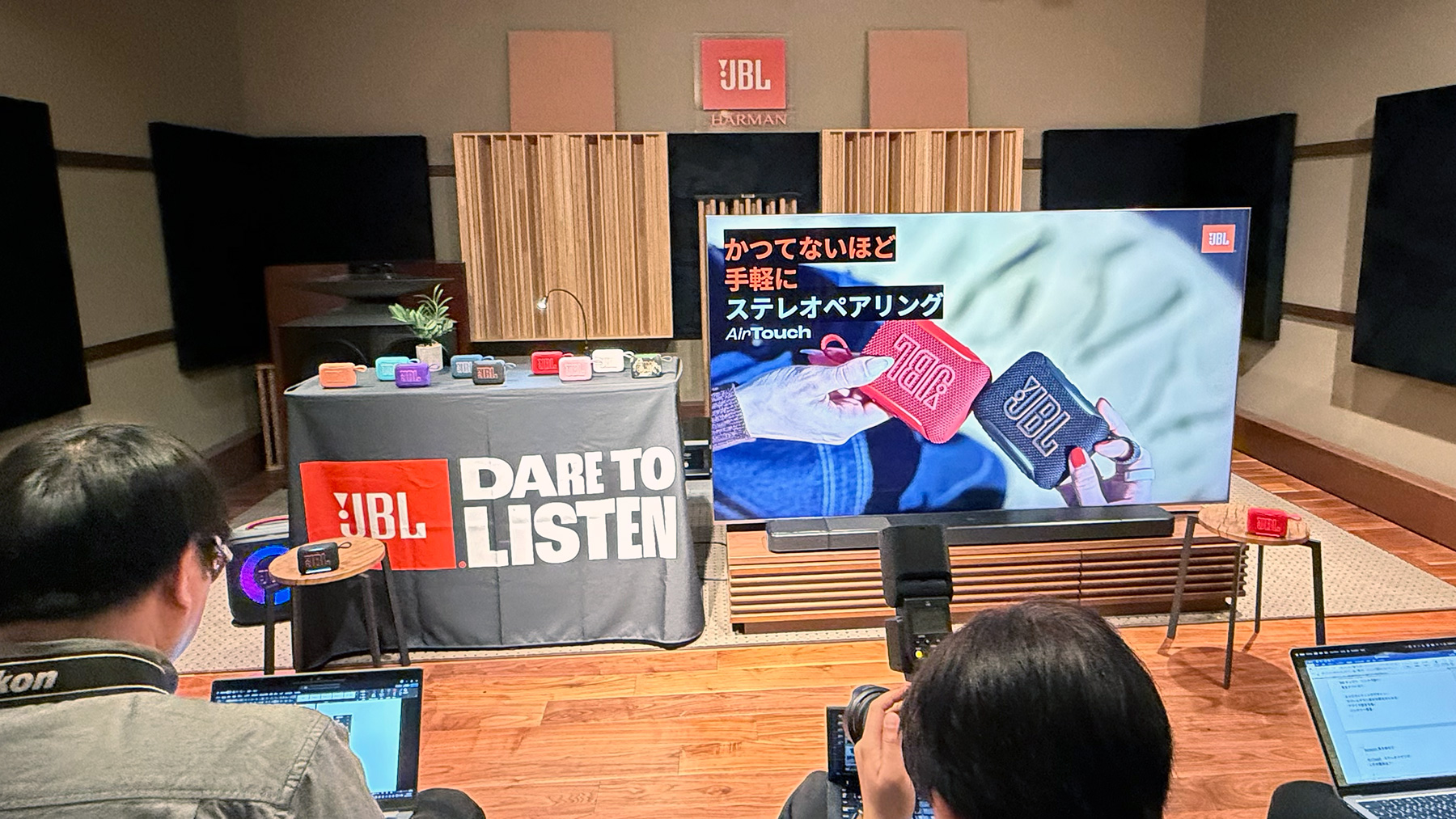実際に聴いてみると、ドライバーとアンプが刷新され、アンプ出力が前モデルから10%パワーアップした恩恵は絶大だ 。高域のヌケが非常にクリアになり、このサイズからは想像できないほど低域もしっかりと再生された。全体としてワイドレンジ化が進み、ダイナミックな「JBLプロサウンド」が体感できた。