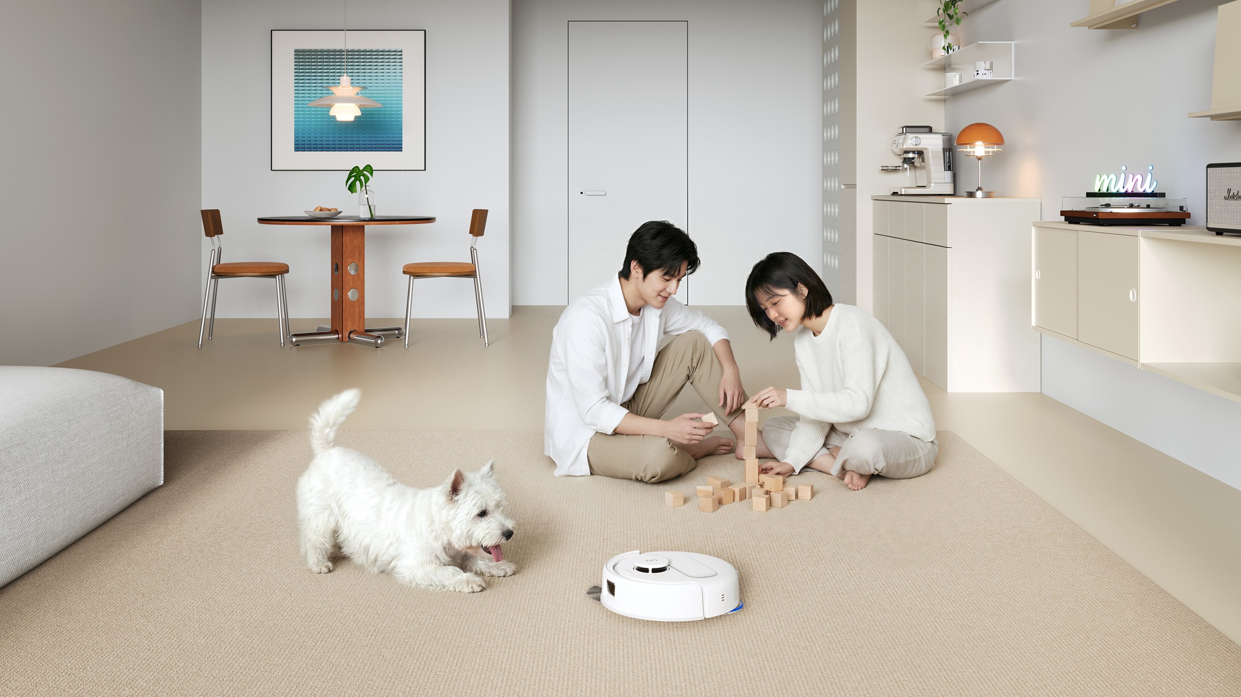また、省スペース設計のmini OMNIステーションを組み合わせることで、吸引からゴミ収集、モップ洗浄・乾燥までを自動化。コンパクトながらオールインワン機能を備え、掃除の手間を大幅に軽減する。