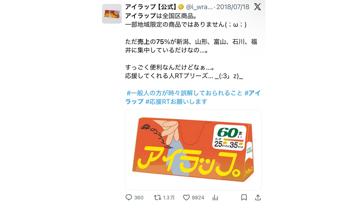SNSを巧みに活用し、全国区への扉を開いた「アイラップ」。今日も公式Xは更新され、新たな情報を提供している。今後も「アイラップ」公式SNSから目が離せない。