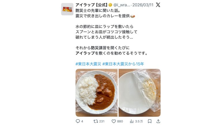 (お米は研がなくても食べられます)#地震 #停電 #防災 #非常食 pic.twitter.com/D7IFiKoSna— アイラップ【公式】 (@i_wrap_official) January 1, 2024