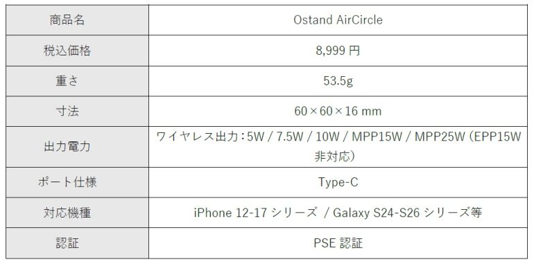 このほか、厚さ16mm、重さわずか53.5gの軽量スリム設計で、MagSafe対応の12N強力マグネットも内蔵。最新規格Qi2.2にも対応し、30分で最大60%の充電が可能。TORRAS製の45W電源アダプターと専用ケーブルも同梱する。