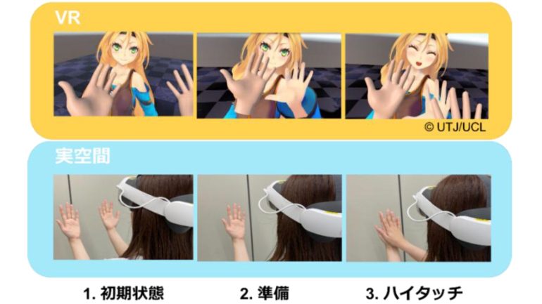その結果、実際には自分の手に触れていながら、あたかもバーチャルキャラクターと物理的にハイタッチしているかのような感覚を得ることができるという。