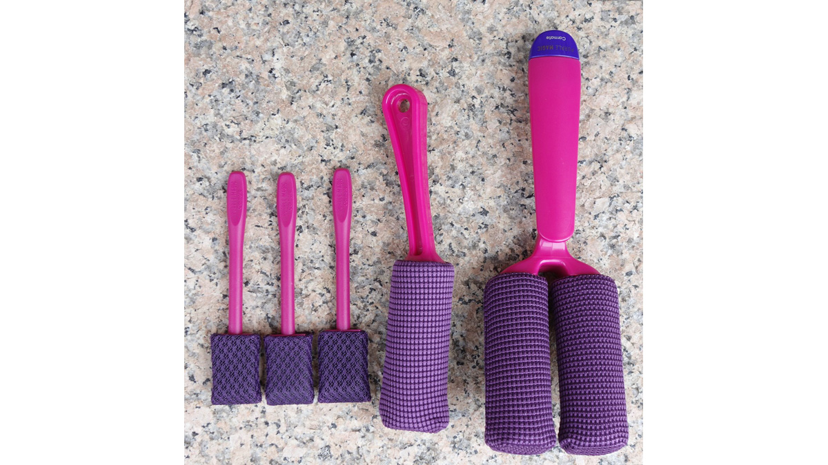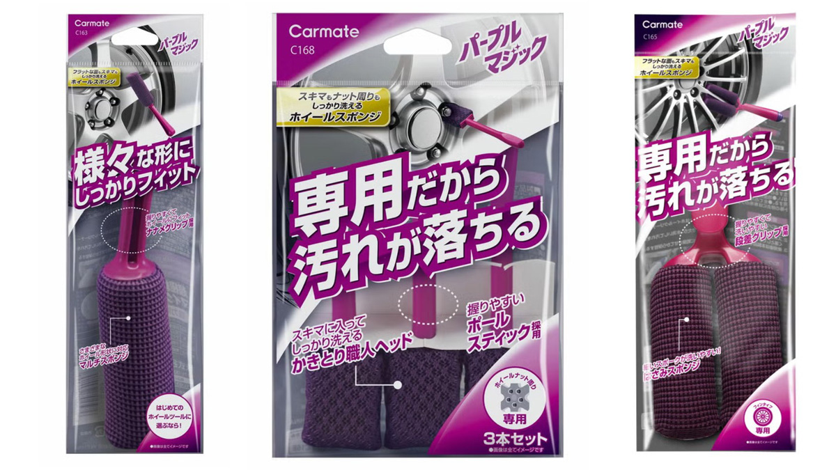 C163パープルマジック ホイールスポンジ ナロー 3本セットは「ホイールのここが洗いにくい!」というユーザーの声に応え、その悩みを解消してくれた握りやすいポールスティック採用のコンパクトなスポンジ。C196パープルマジック ホイール専用クロスなどで落としきれなかったホイールナット部分などの細部までしっかり洗えるスグレもの(ナット、ボルト周りに5mmの隙間は必要)。メッシュスポンジによる洗浄力の高さも自慢だ。