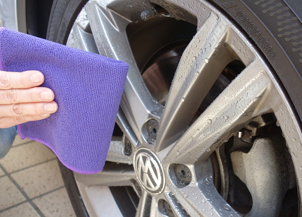 そしてC196パープルマジック ホイール専用クロスまたは別のタイヤとホイール専用に用意したクロスで仕上げ拭きを行う。