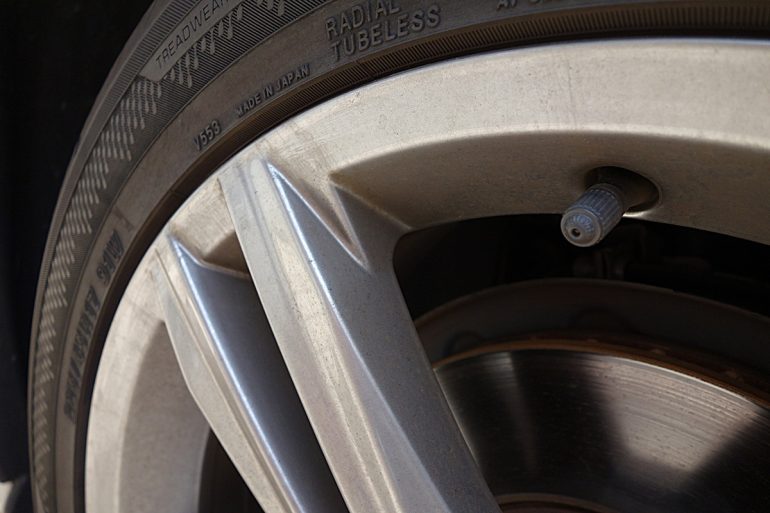 もうひとつ、クルマをビシッと見せる方法は、タイヤとホイールである。ここも汚れたまま、黒いタイヤが薄汚れ、ホイールがブレーキダストで茶黒く汚れたままだと、ボディがきれいでも、クルマ全体が野暮ったく見えてしまう。黒いタイヤが黒々としていて、ホイールがピカピカであれば、これまたボディ全体が薄汚れていても、クルマ全体がビシッと精悍に見えるものなのだ。