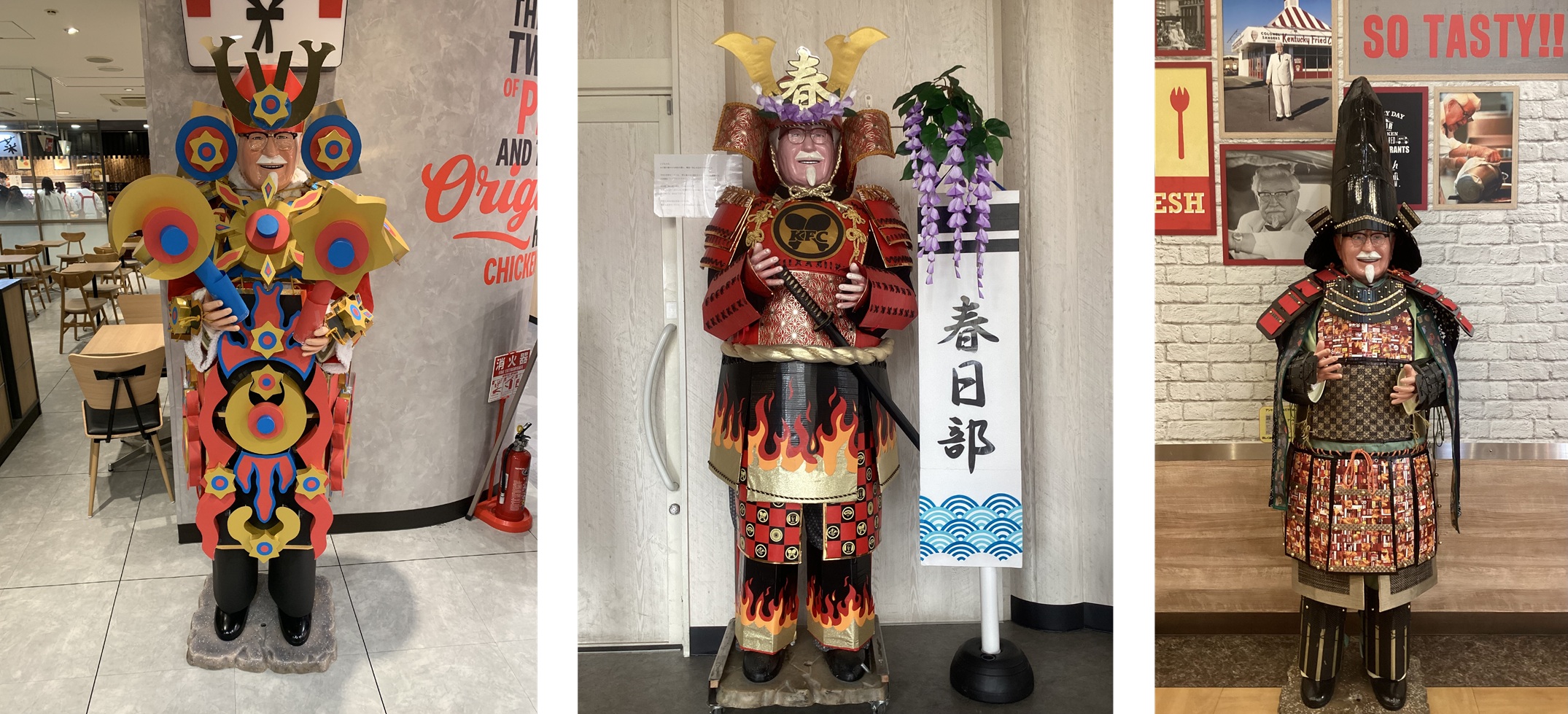 KFCでは、毎年5月5日の端午の節句に合わせて、店頭のカーネル立像やカーネルフィギュアに鎧や兜を着せた「武者カーネル」を展示している。この取り組みは、1984年に店舗従業員の「お客さまに喜んでほしい」という想いから始まり、40年以上にわたり続くKFCの伝統的な地域活動のひとつとなっている。