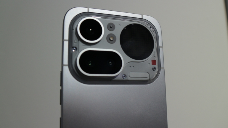 ディスプレイは1.5K解像度の6.77インチ。最大輝度は4500ニトとなる。背面はスケルトンボディを踏襲しつつ、カメラ横にLEDライトが段階的に発行する「Glyphバー」が搭載される。