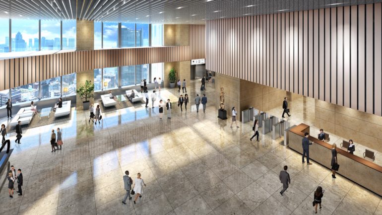 低層部(10階~20階、基準階面積約1,900坪)と高層部(22階~38階、基準階面積約1,300坪)からなるエリア最大級のフロアプレートを有するオフィスを整備。10階および21階には光と風を感じながら東京のアーバンビューを一望できる屋外スカイガーデンを設ける。