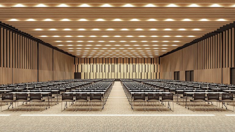 5階~8階には、都心最大規模のMICE・ビジネス支援施設を整備。約1,500m2の2つのホール、計約1,400m2の12のカンファレンスルームを備え、株主総会や国際学会からコンサート・展示会まで幅広く対応。また、ホテルと連携し、宿泊・会議・交流を一体的に提供する。