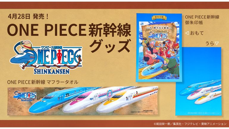アサミズカンパニーから、JR西日本が運行する山陽新幹線「ONE PIECE新幹線」をモチーフにした新グッズが2026年4月28日より発売される。今回はせとうちブルー号、トニートニー・チョッパー号、モンキー・D・ルフィ号の3車両がデザインされたタオル、そして御朱印帳をラインアップ。