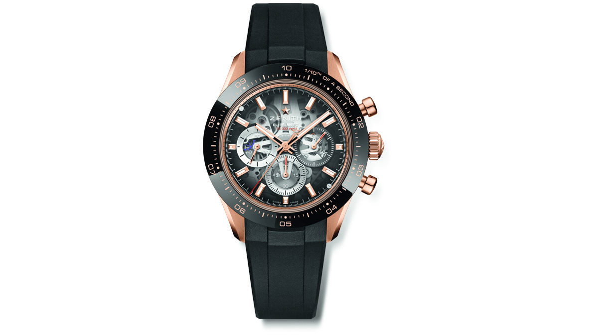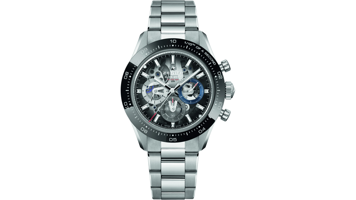 秒針の1ステップが1/10秒に対応し、目盛りの付いたセラミックベゼル上でそれを直接指し示すことで、高振動がなせる性能の計測と表示を実現している。ゼニスのクロノグラフは半世紀以上にわたり、このテクニカルなアプローチを守り続けてきた。
