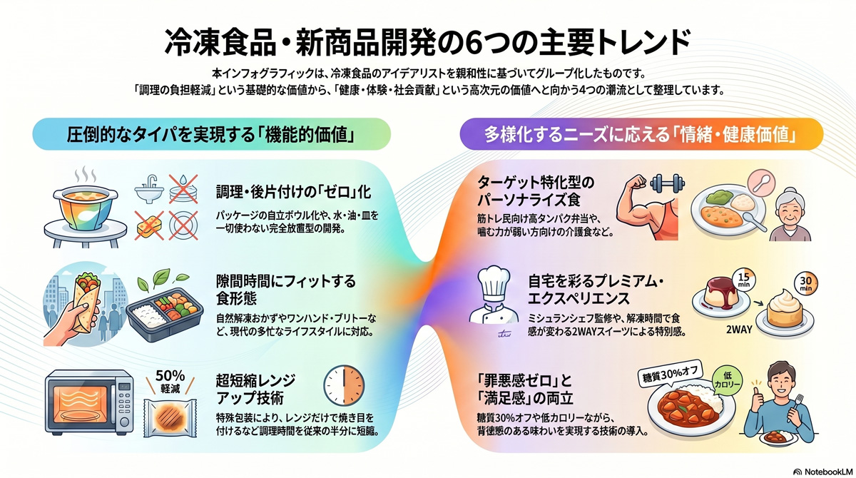 例えばチャット欄に、「安価な素材を活用し、価格を抑えつつ試作品評価4.0以上を獲得できそうなシニア向けの冷凍食品の試作案を作成して」と入力することで有益なヒントが得られると思います。もちろん、冷凍食品に限らず、新商品の開発が求められるどんな業種に応用できて便利です。