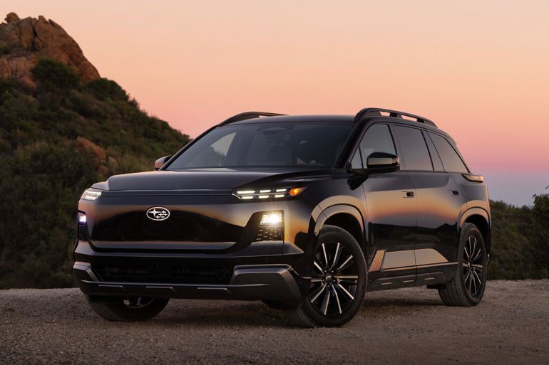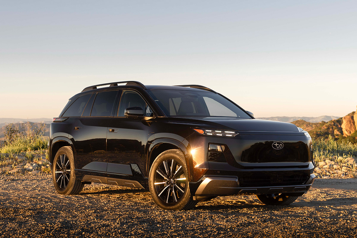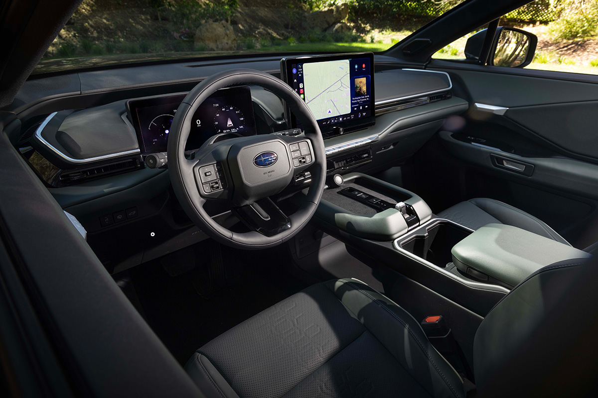 電池・充電性能では、ユーザーの用途やライフスタイルに応じて選択できるよう、77.0kWhと95.8kWhの2種類のバッテリーサイズを設定。95.8kWhバッテリー搭載モデルでは、スバルBEVラインアップ最大のボディサイズでありながら約300マイル以上の航続距離を実現した。また、バッテリープレコンディショニングを採用し、バッテリーを充電に最適な温度とすることで、充電量10%から80%までの急速充電時間を約30分とした。さらに、充電ポートには、北米充電規格(NACS)が採用された。