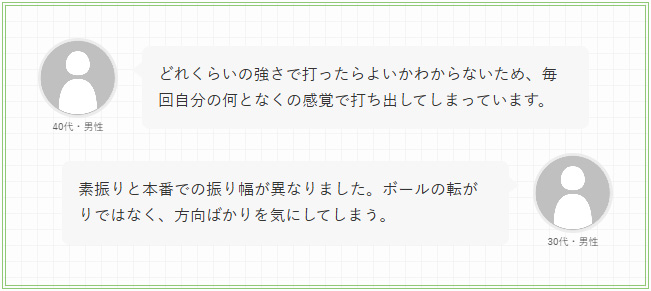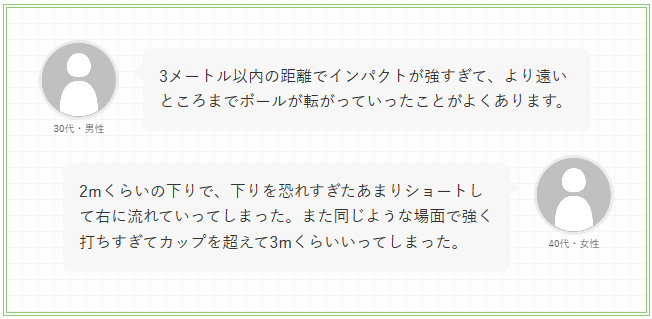 これらの声からも、感覚に頼った力加減では同じ距離でも結果が大きく変わってしまう実態がうかがえる。