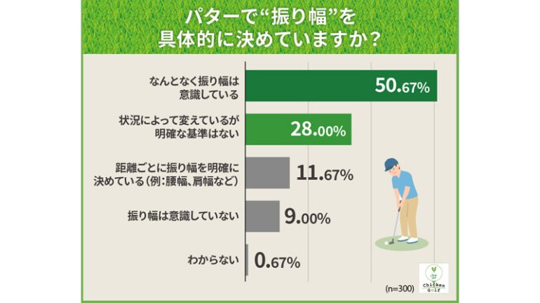 パターで振り幅を具体的に決めているかを調査したところ、「距離ごとに振り幅を明確に決めている」と回答したのはわずか11.7%にとどまった。