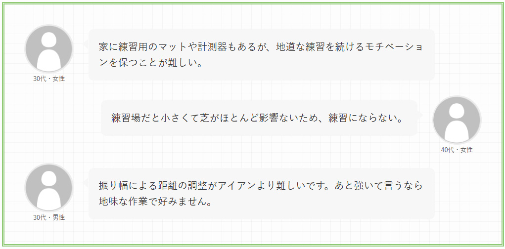 自由回答にも、練習環境と実際のコースとのギャップに悩む声が見られる。