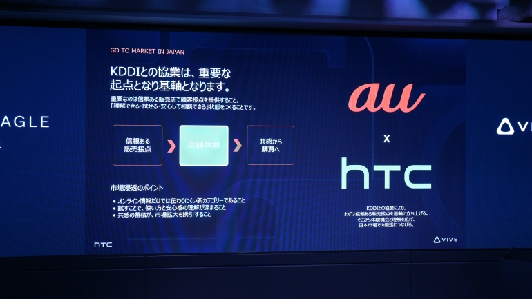 販路については、HTCの公式オンラインストアをはじめ、KDDIおよび沖縄セルラーの直営店(全国25箇所)、一部のau Style、au Online Shop、au PAY マーケットでの取り扱いが決定している。さらに、家電量販店としてはヤマダデンキ(auコーナー)での販売も行われる。