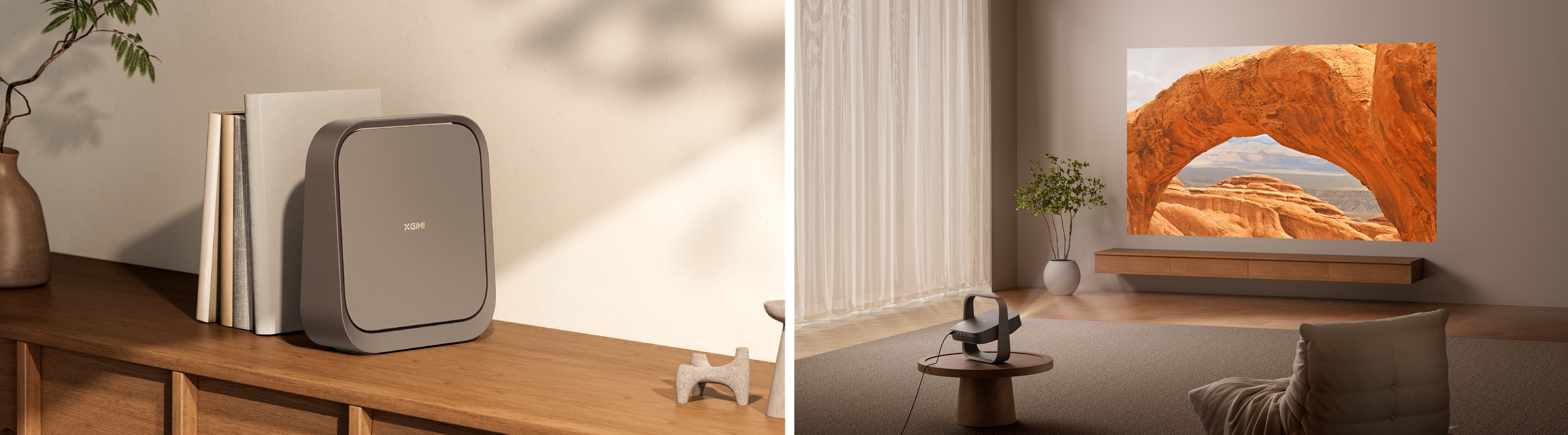 「日本の暮らしにフィットする4Kプロジェクター」をコンセプトに、「薄型設計・高性能」を兼ね備える製品として開発された、シリーズ最上位モデル。150°回転可能なジンバル一体型の薄型設計により、壁や天井への投影など自由な設置を実現。本棚などの限られたスペースにもすっきり収まり、日常空間に自然に溶け込む。