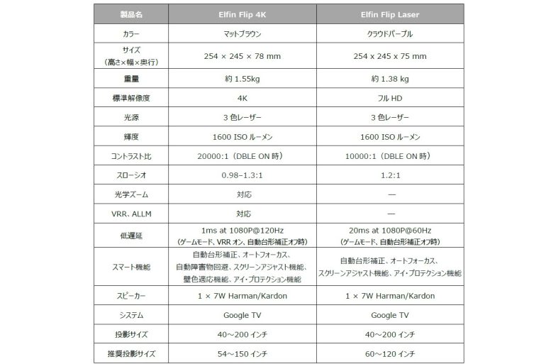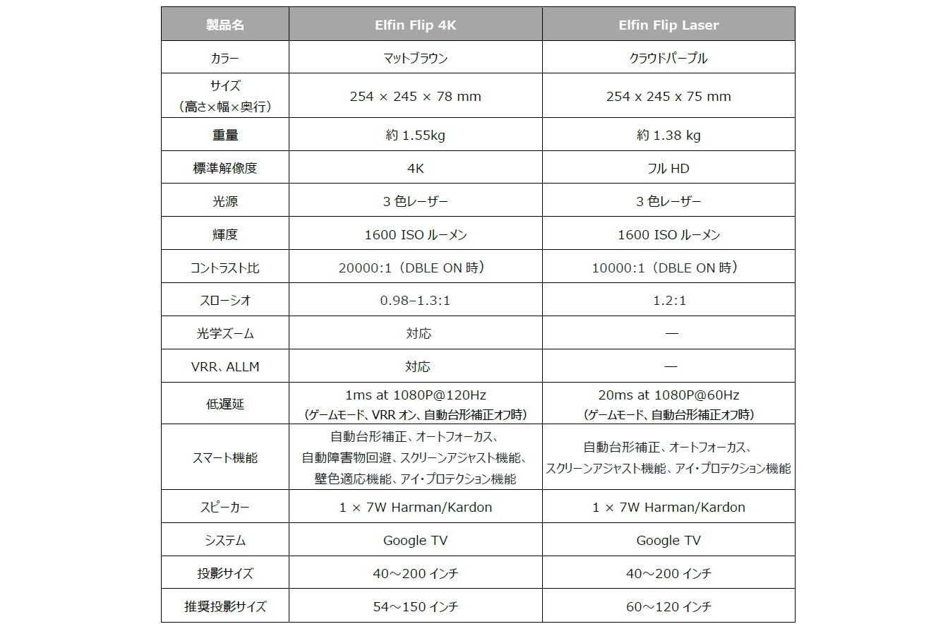 XGIMIは、2013年に設立された、プロジェクターブランド。今回登場した「Elfin Flip 4K」と「Elfin Flip Laser」は、コンパクトな薄型設計と高画質を両立する、XGIMIの主力シリーズ「Elfin」シリーズの新製品。「Elfin Flip 4K」は、4K解像度に対応したシリーズ最上位モデル。一方、「Elfin Flip Laser」は、フルHD解像度に対応したモデルとなる。