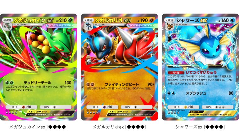 「メガジュカインex」「メガルカリオex」のカードに加えて、「シャワーズex」が初登場。