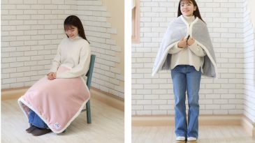 腕を通して着ることもできるサンコーのヒーター内蔵型「着るロングブランケット」