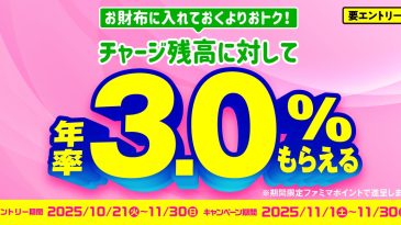 【ポイ活の極意】11月はファミペイチャージでもれなく年率3.0%のボーナスが!ドラッ…